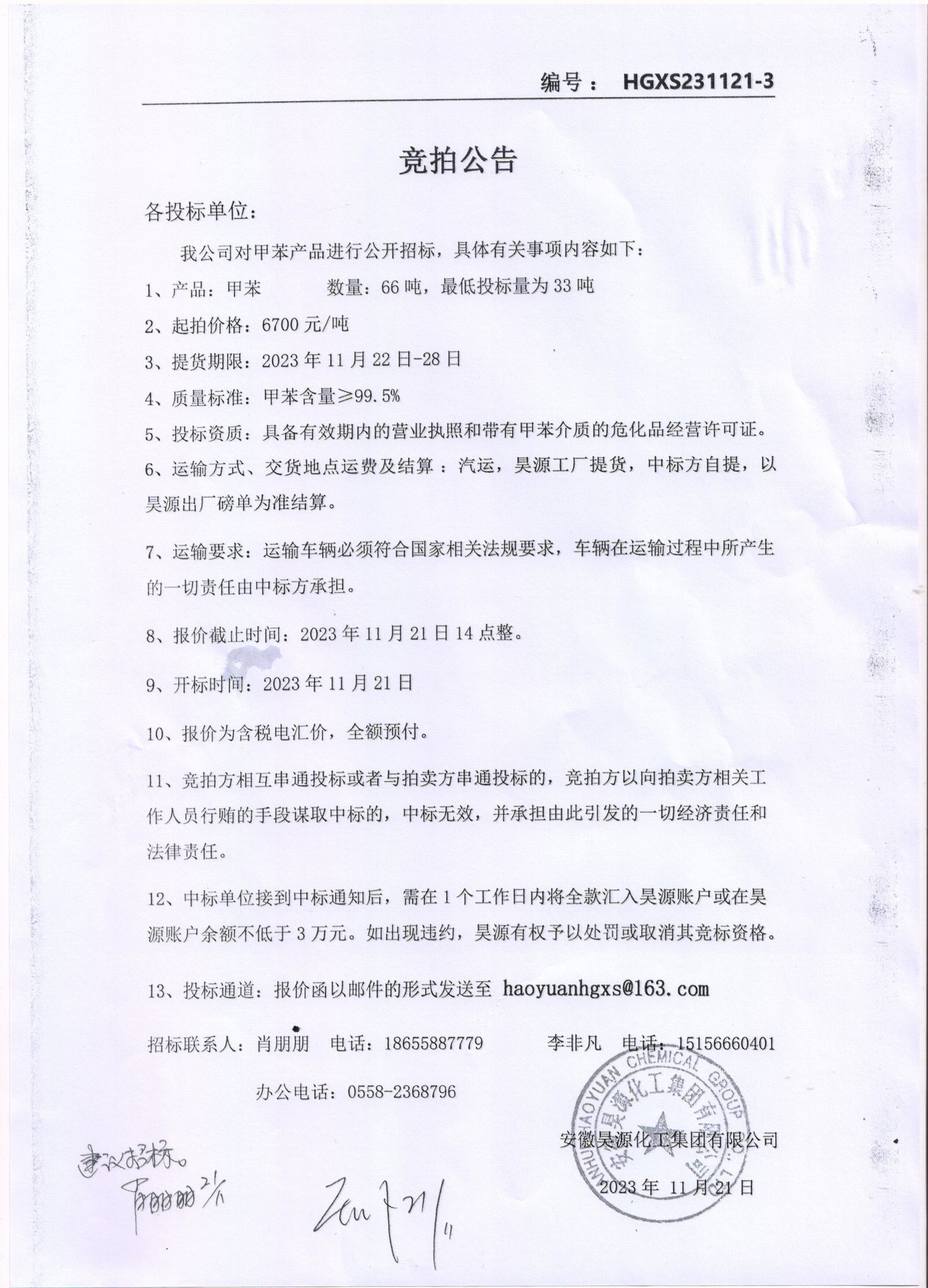 上一條:化工銷售公司乙醇競拍公告下一條:化工銷售公司粗甲醇競拍公告