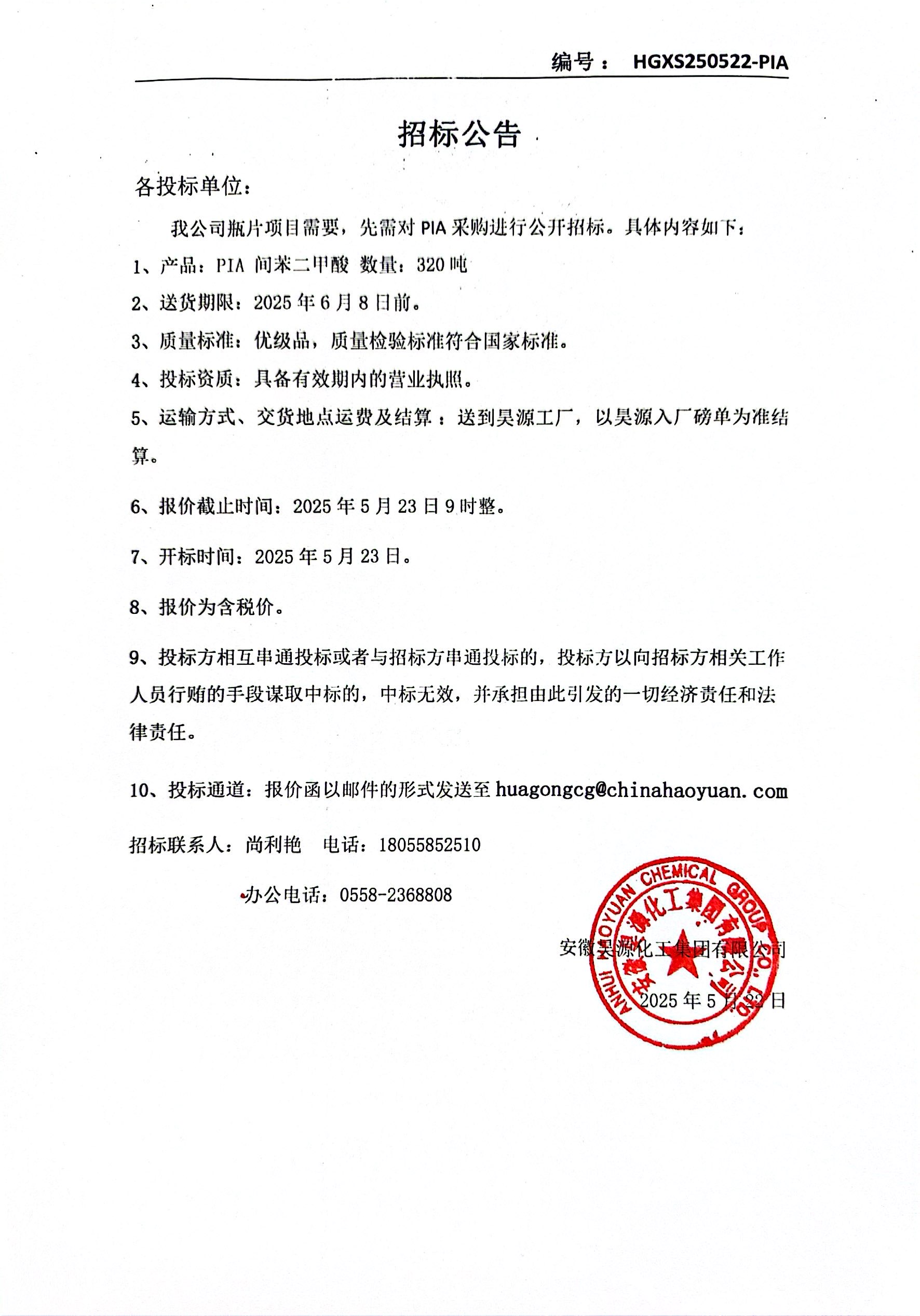 上一條:一批無水硫酸鈉、工業鹽銷售招標公告下一條:化工銷售粗甲醇銷售招標公告